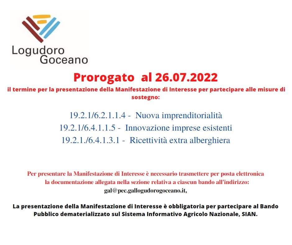 Prorogato al 26.07.2022 il termine per la presentazione della Manifestazione di interesse per partecipare alle misure di sostegno: